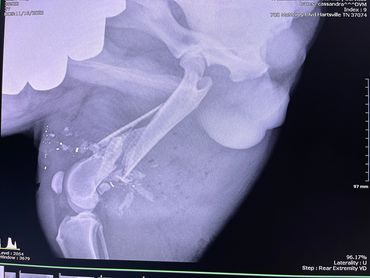 We were working outside, and a couple of our dogs were playing in the yard. It was starting to get dark when we heard a bunch of coyotes followed by a gun shot. We live in the middle of nowhere so these types of things aren’t unusual, but this time the sounds were uncomfortably close. The dogs were quick to come back up to the house, but Hugo was no where to be found. We hollered for him for hours. It was 22 degrees that night, and Hugo hates the cold, but he never came home. We searched the woods for hours the next morning. Nothing. We took to local Facebook groups to find him with no luck. When Shanda came home from work that Tuesday, Hugo was standing at the top of our driveway. He was beat up pretty bad, his hind leg was swollen, overall he seemed ok, but most importantly he was alive! THANK GOD! Jamie took him to the vet the following morning, and we learned that he had actually been shot by a muzzleloader. The bullet entered the back of his hind leg, come out the front of his leg, reentered his stomach, and stopped at his chest. The injury to his leg was too severe for our vet to repair, and with so many other question marks remaining, we had no choice but to amputate. He had lost a lot of blood and was possibly bleeding internally so we had to put the surgery off several days to get his blood count up. He spent eight days at the vet trying to stabilize his body before they were comfortable enough to do the amputation and fix the hernia where the bullet reentered his stomach. The vet was not able to remove the bullet from his chest without fear of it moving further into his chest cavity. A few days after surgery, we finally got to bring our big guy home! He’s doing very well and is adjusting quickly. It’s truly a miracle! We pray that the muscles around the bullet heal and keep the bullet in place to avoid any further complications. Right now we are just thankful that our baby is home and alive!